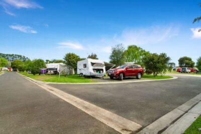 These powered sites offer a level surface and convenient access for caravans, campervans, or tents. Each site includes a power hookup and is close to shared amenities like toilets, showers, and laundry facilities—ideal for a comfortable and connected stay.