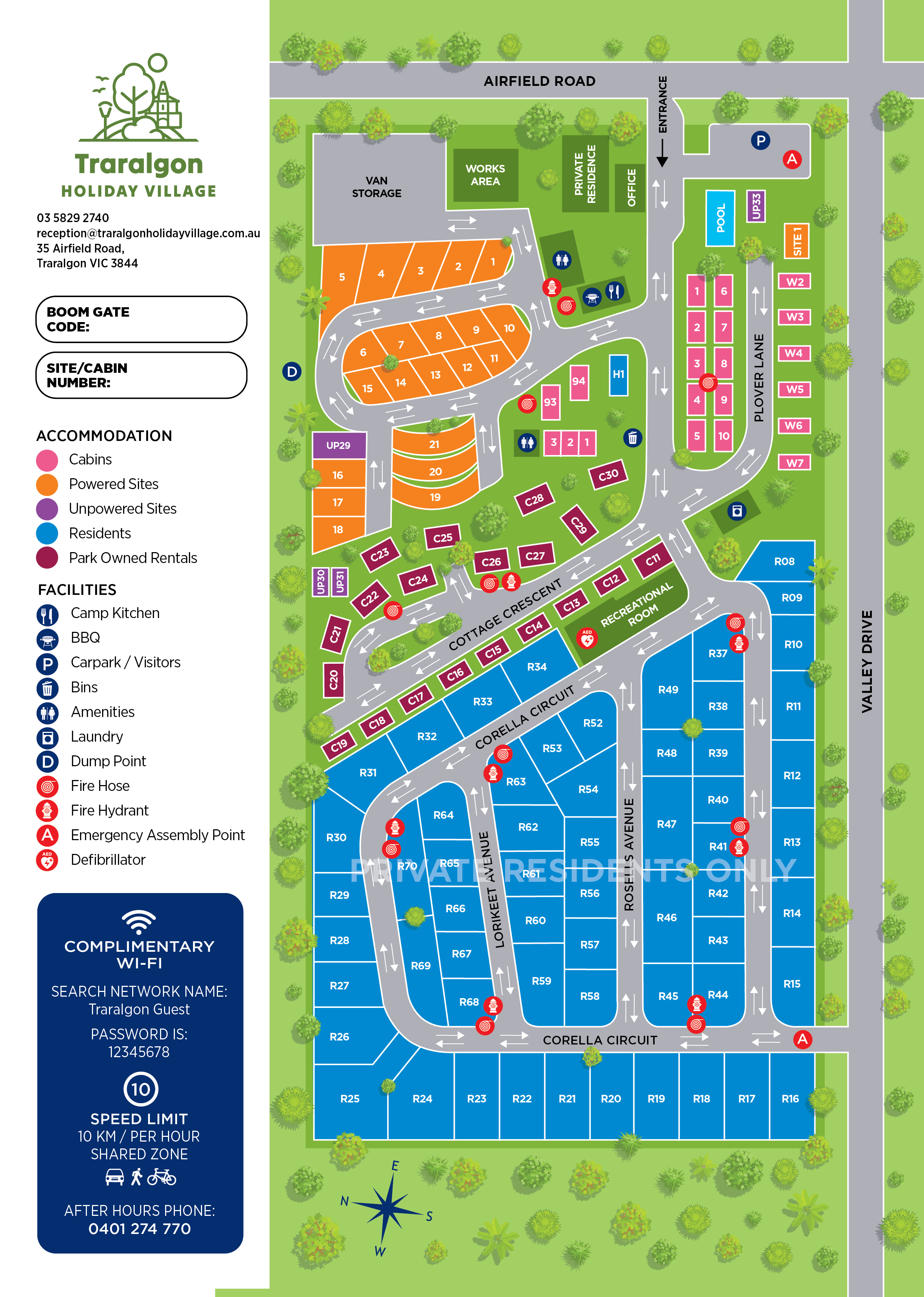 - Guests are responsible for the safekeeping and replacement of any accommodation keys. Guests requiring a key from the park manager after office hours will be charged a service fee of $55.00.